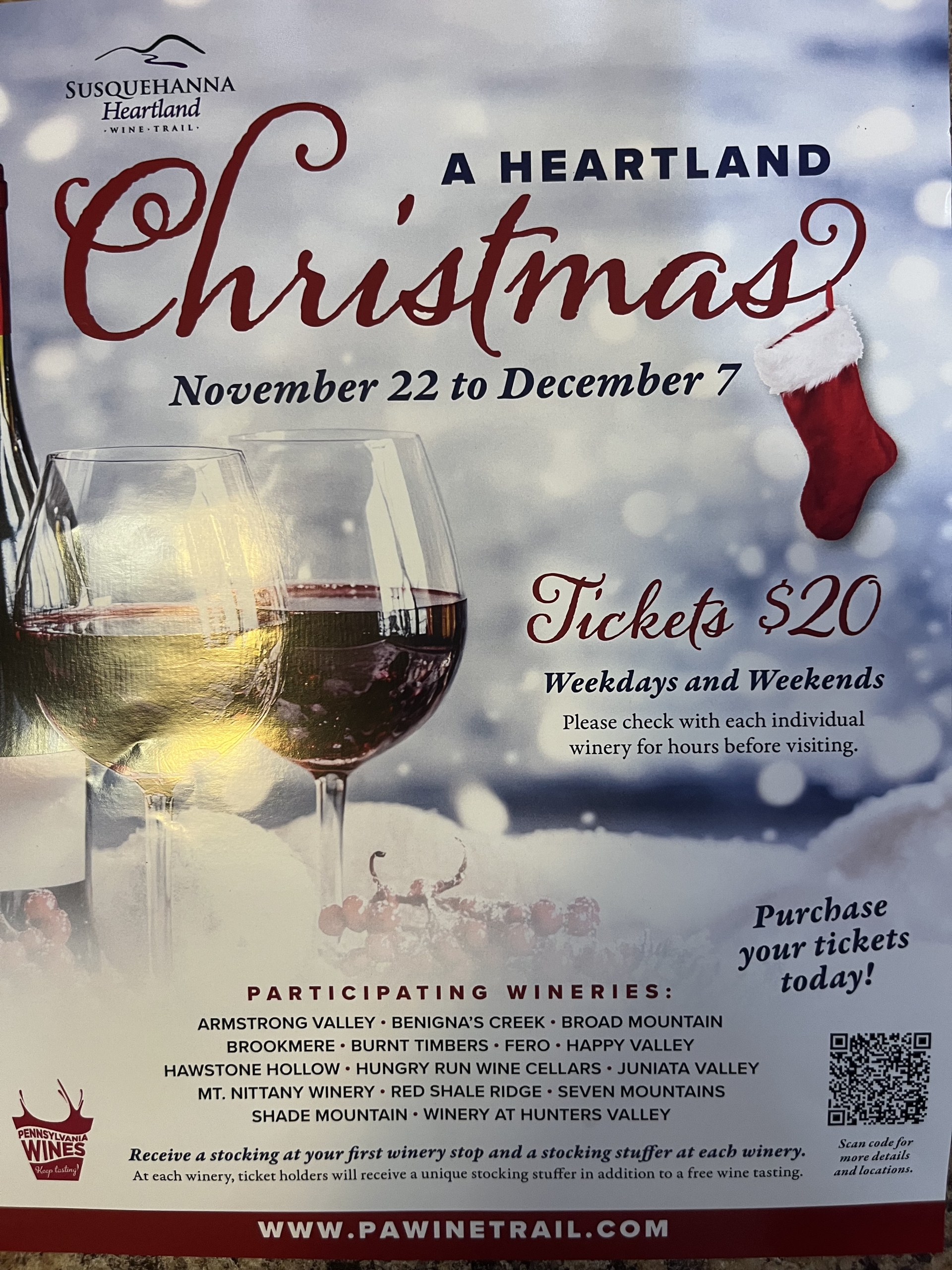 Join us for the Heartland Christmas Wine Trail. This event goes from 11/22 through 12/7 including week days and weekends. There are 15 wineries included in your $20 ticket. You can purchase your tickets at any of the participating wineries. Please see each individual winery for hours. We will be open 11-5 every day for […] |